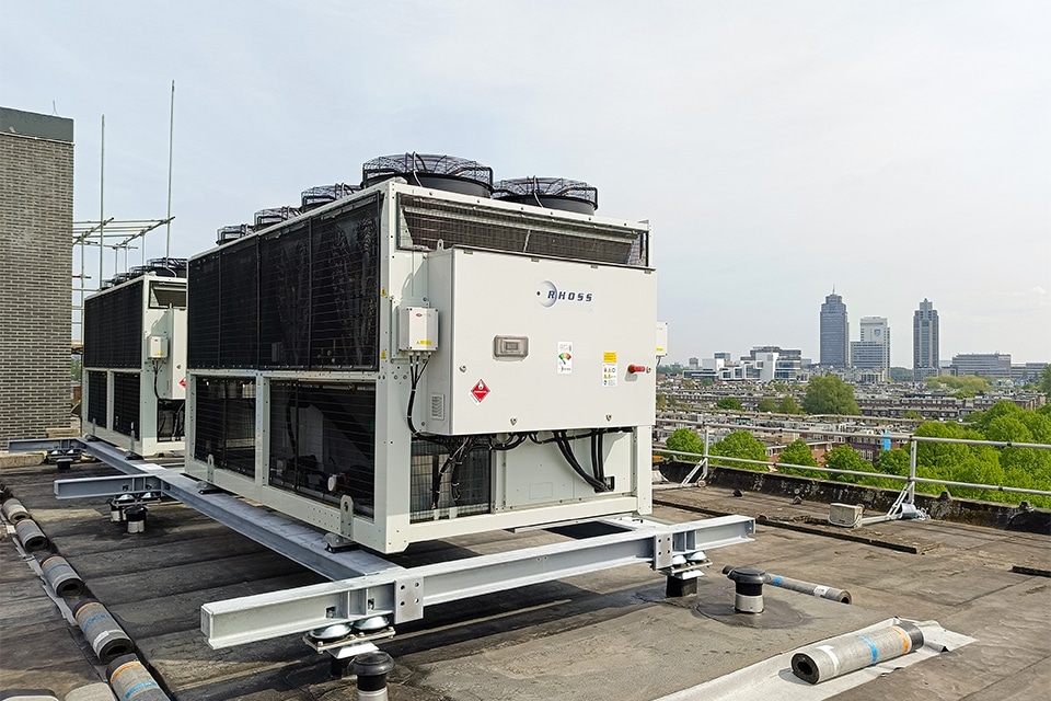 De oorspronkelijke installaties stammen uit 1968 en voldeden niet meer aan de eisen van deze tijd. “Het gebouw werd verwarmd middels een traditionele collectieve stadsverwarmingsinstallatie en radiatoren. In de toekomst wordt de warmte- en koude-opwekking hoofdzakelijk voorzien door warmtepompen die gevoed worden middels een WKO-installatie én afgifte door een klimaatplafond”, legt De Graaf uit. “Het Tinbergengebouw krijgt meerdere warmtepompen die het hele complex voorzien van verwarming en koeling. Ook de omliggende universiteitsgebouwen, die voorheen op dezelfde installatie waren aangesloten, zullen hier weer op worden ingekoppeld.”