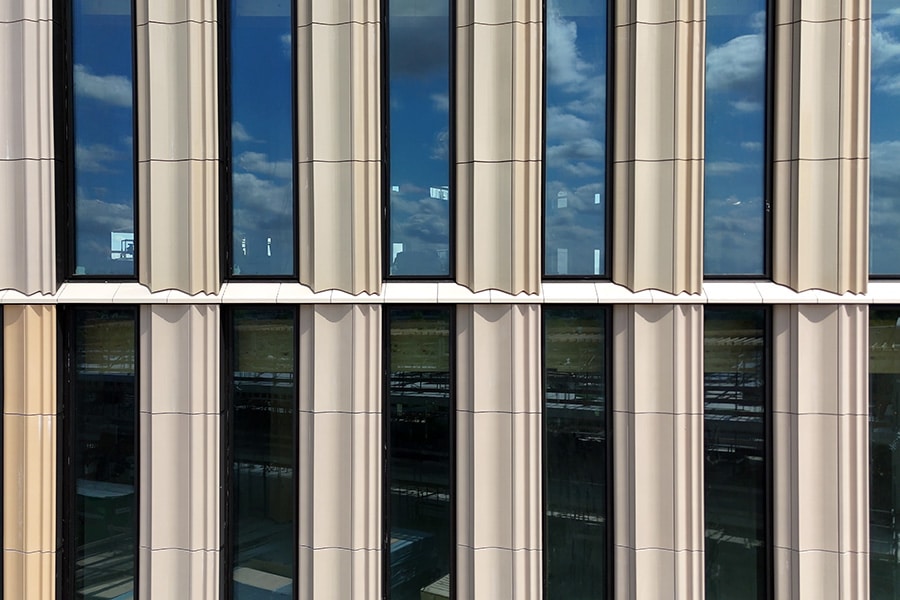 Aan de basis van de elementengevel ligt het Schüco gevelsysteem met eigen ontworpen profielen, vertelt Hendrix. “Bijvoorbeeld om een goede windlast- en gewichtsafdracht van de terracotta elementen te garanderen. Onze engineers zijn erin geslaagd om deze krachten in het gevelsysteem zelf op te vangen, terwijl de hoge thermische prestaties overeind blijven. Een sterk staaltje vakmanschap, wat tevens geldt voor de technieken. Zo hebben wij in de elementengevel de bliksemafleiding en verborgen ventilatievleugels geïntegreerd.” In totaal heeft Vorsselmans NV 630 elementen van circa 2 meter breed en gemiddeld 4,5 meter hoog gemaakt, in 250 verschillende modellen. “Naar wens van de architect is bijvoorbeeld gespeeld met breedtes en kleuren terracotta. Er zit heel weinig repetitie in dit werk, wat resulteerde in een unieke legpuzzel van 6.000 m2.”