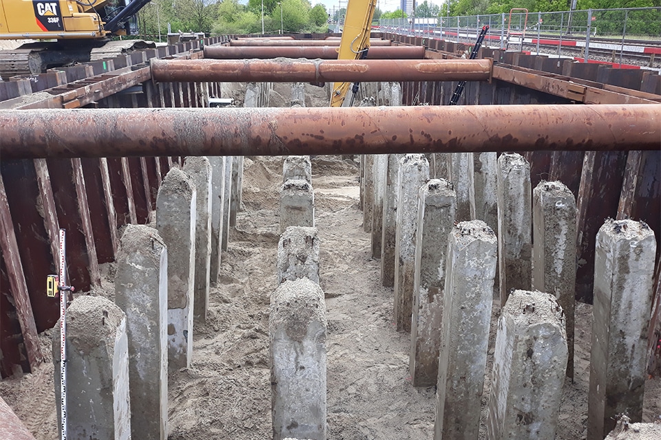 CRUX was ook tijdens de uitvoering actief betrokken. “We ontwierpen onder meer de werkplateaus voor funderingsmaterieel, op basis van een nieuwe richtlijn die hier voor het eerst op grote schaal werd toegepast”, vertelt De Koning. “In combinatie met de slappe ondergrond leverde dat een behoorlijke ontwerp- en uitvoeringsuitdaging op.”