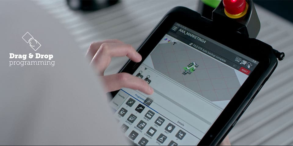 Het gebruiksgemak van de CRX-10iA begint bij de installatie. De robot, die slechts 40 kg weegt, en de 20 kg controller kunnen gemakkelijk manueel naar de plaats van gebruik worden gebracht en geïnstalleerd worden. Het nieuwe, intuïtieve touchpanel heeft een overzichtelijke gebruikersinterface met grafische symbolen, en de programmering is mogelijk met behulp van de “drag and drop” functie. Zo kunnen zelfs beginnende operatoren in eenvoudige stappen werkprogramma’s maken. Om de robot de gewenste bewegingsvolgorde aan te leren, kan de operator de robot ook handmatig naar de juiste punten leiden.